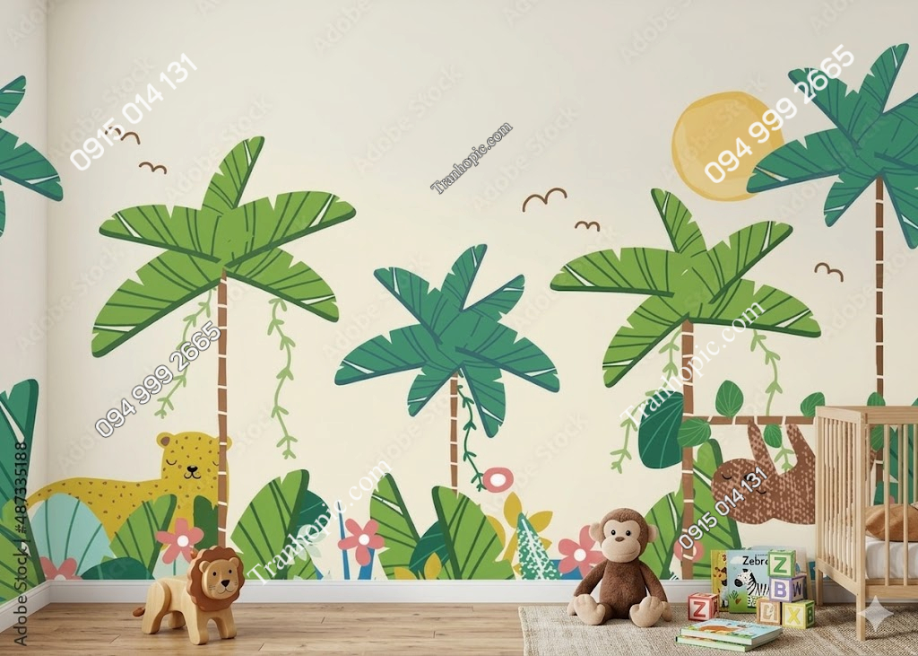 Cùng Opic xem ngay những mẫu tranh “điểm 10” cho không gian của các bé, mỗi mẫu lại mang một sắc thái tâm lý rất tích cực. Đây là phong cách Modern Jungle với nét vẽ hoạt hình dẹt (flat art) rất thịnh hành.